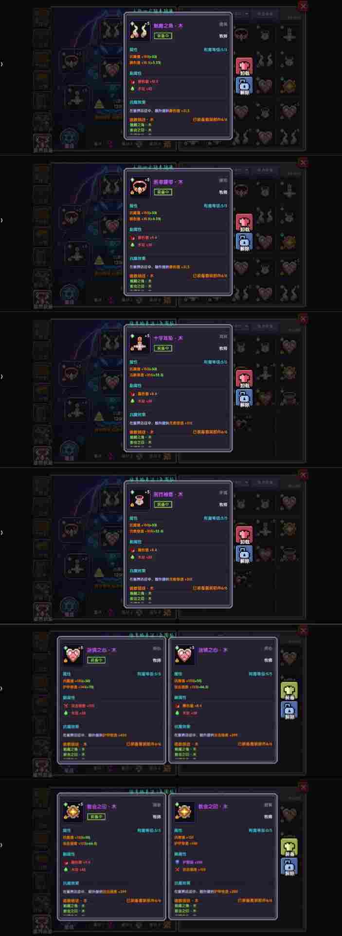 该组武器虽然和牧师适配度不算很高但是比起英魂的火水系列那组的实战效果更好(亲测),因为在这个游戏里面有很多面板到了一定数值就会被稀释,所以不需要特意去把一个属性叠的很高,要均衡去提升