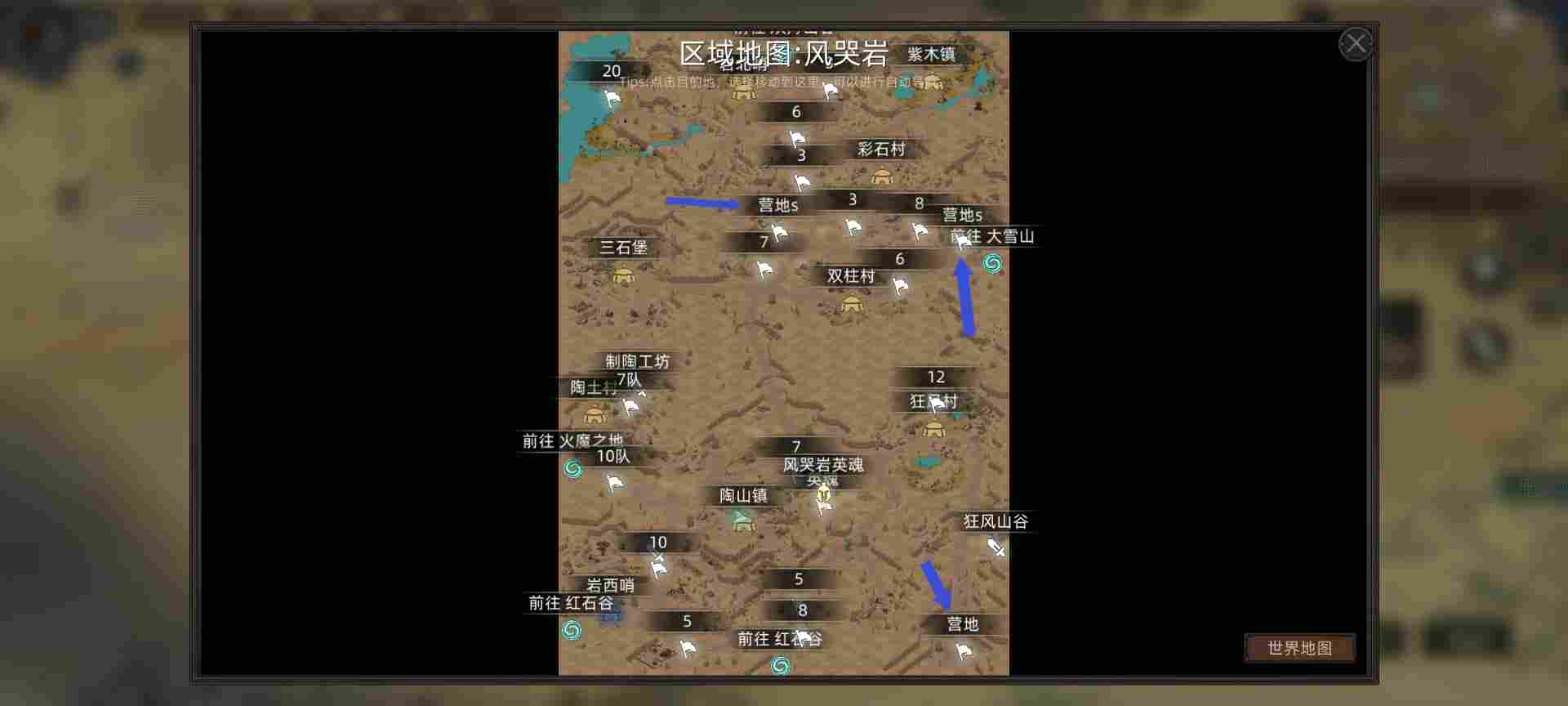 好了,风哭岩已经探索完毕,下面风无痕准备踏上右边大雪山地图旅途了