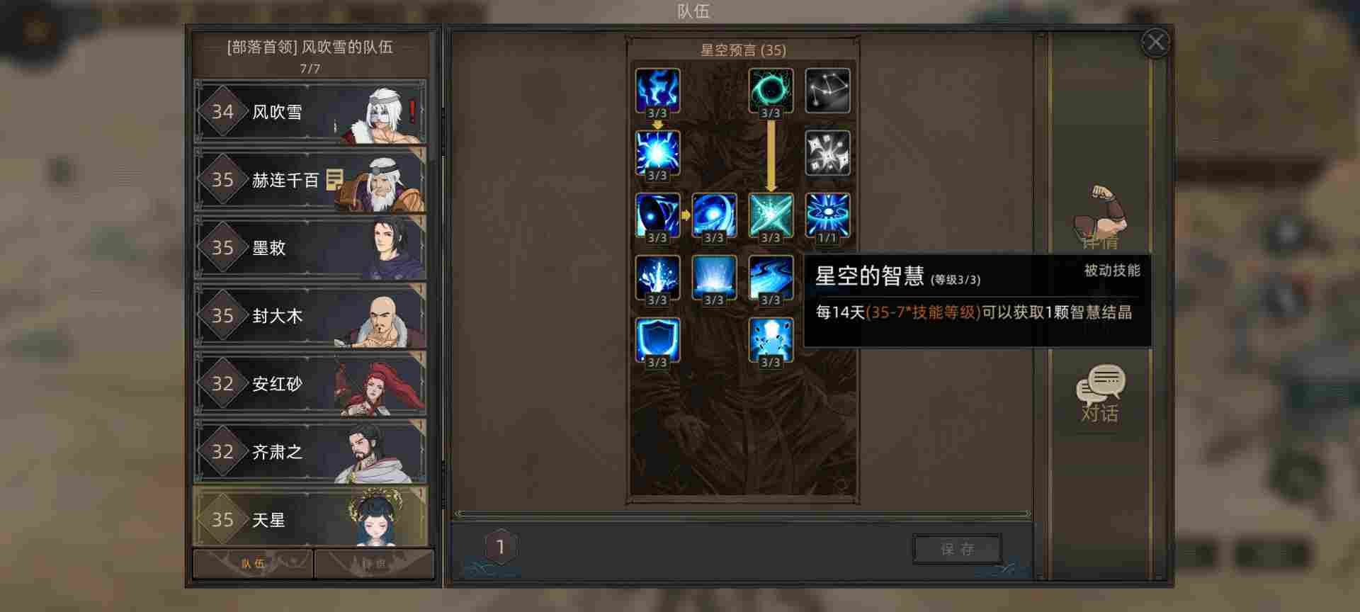 8.天星的被动技能星空的智慧,15天一颗技能水晶。实力可以刷强盗营地的时候,就把天赋点刷出来点出那个可以侦查所有英雄动向的天赋。然后顺道把天星招进来