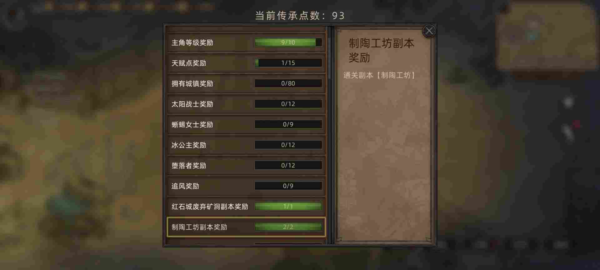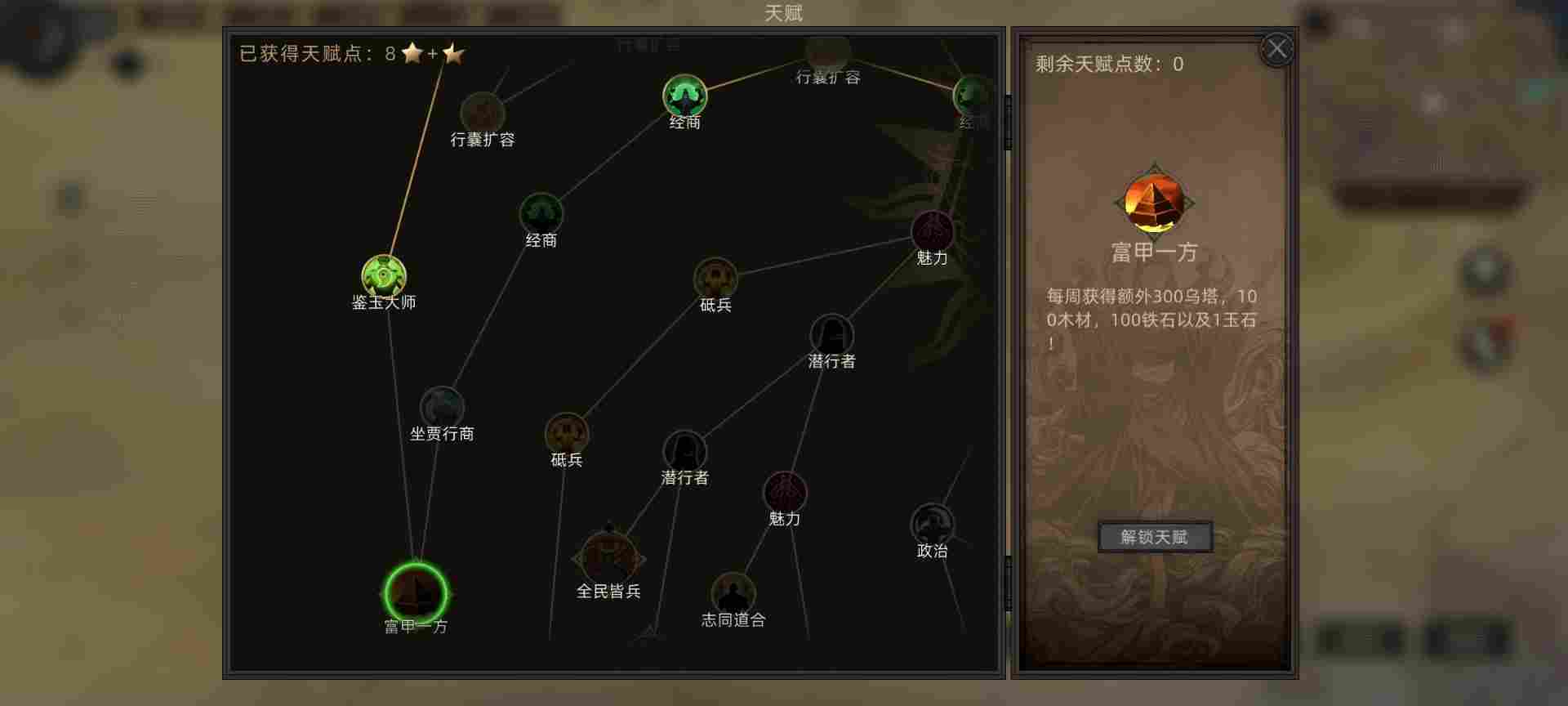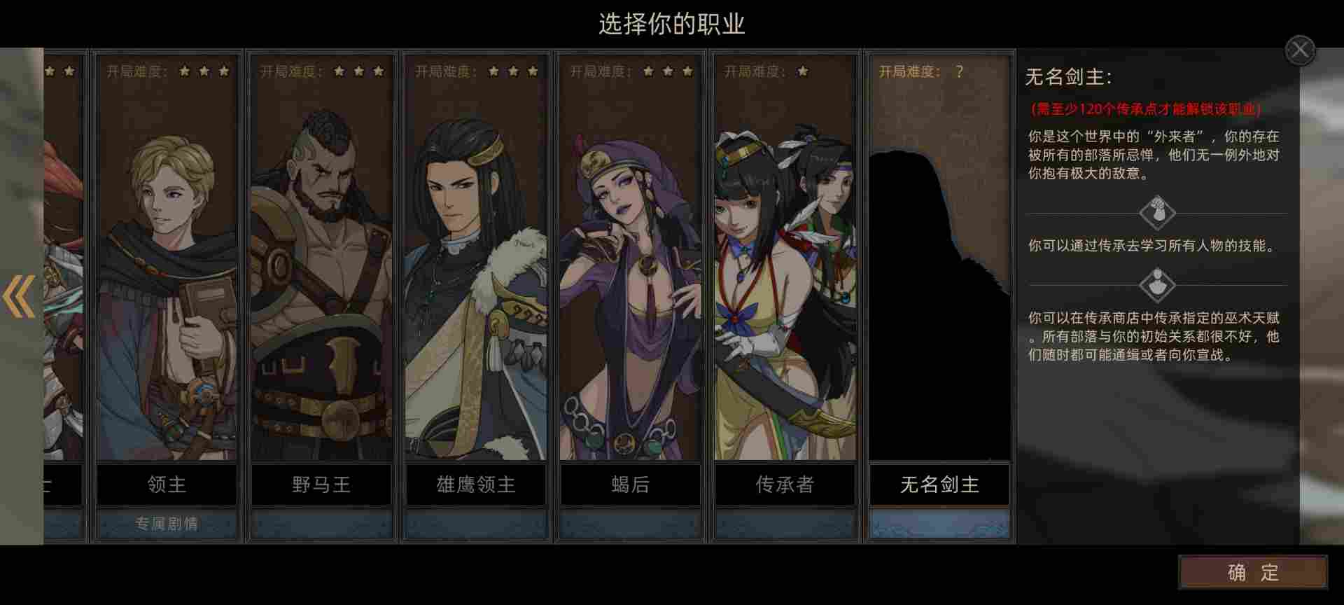 技能选择这里选了五个职业技能传承开局,消耗400点成就