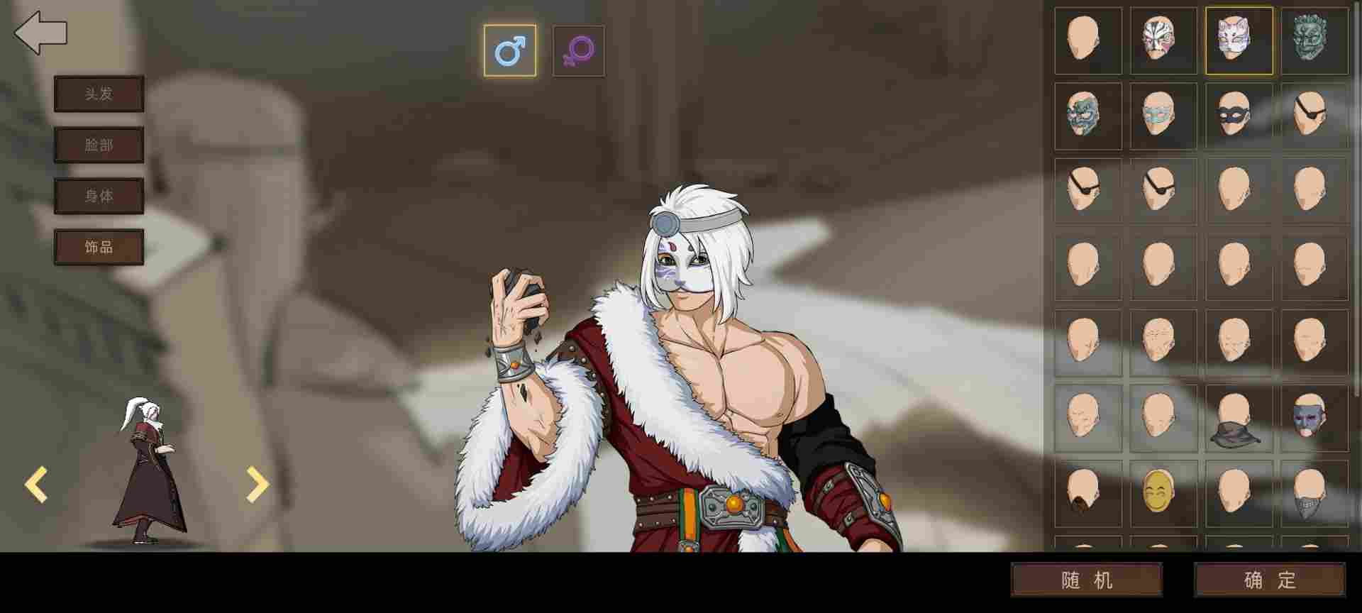 楼主这里手搓个霸气点形象,选了一套红色衣服与剑豪模型契合,然后白头发带个面具搞点神秘感,能看到眼睛就行了,毕竟人的眼睛会说话。这样整体下来一个部落首领气质就有了,能镇压住手下。