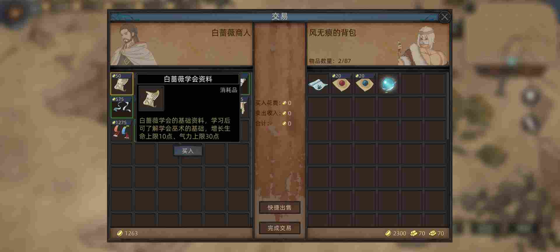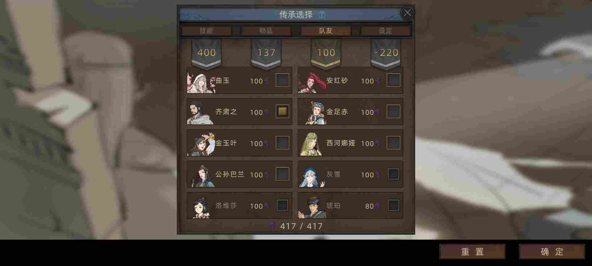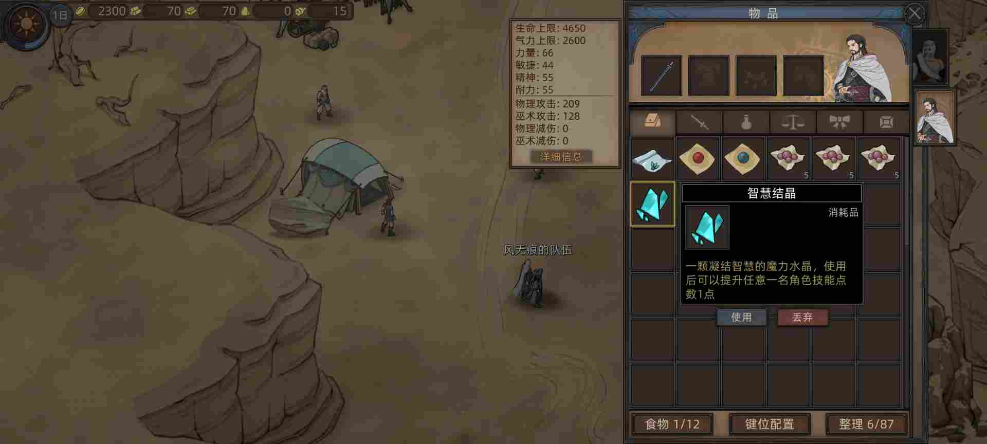 这里选了齐肃之,能打能奶还能降低敌人数值,然后能治疗部队重伤。最重要的是为了14天一次对话领取生命药剂技能,食用加500生命。综合一局下来两三百天可以为主角增加6k-1w点生命值。技能商店里还有三天刷新一次加30生命上限和10气力上限的资料书购买,你值得拥有。