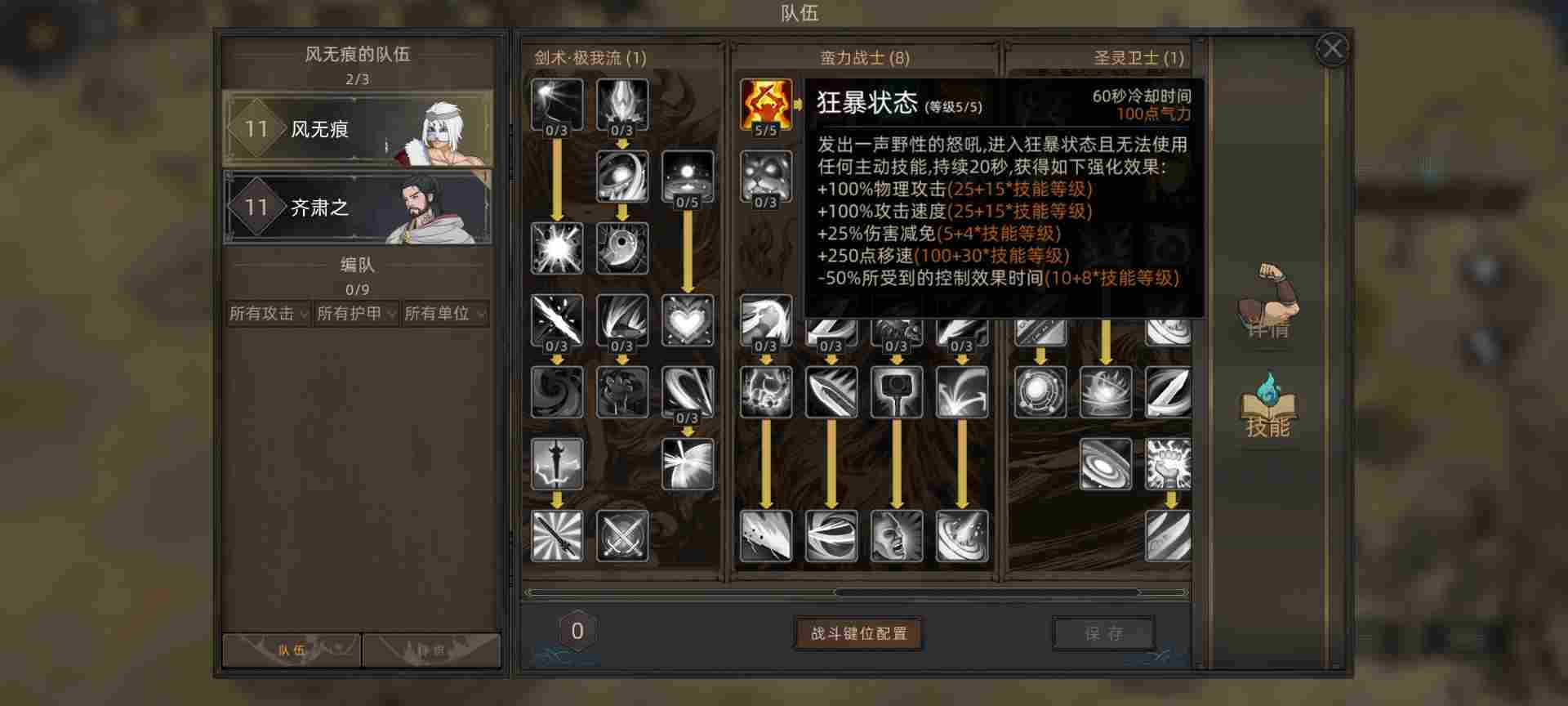 这里5点给了狂暴状态拉满,100%攻击和攻速,还有伤害减免。点到右边狂暴状态强化,大概平A十下会触发这个技能旋风效果。
