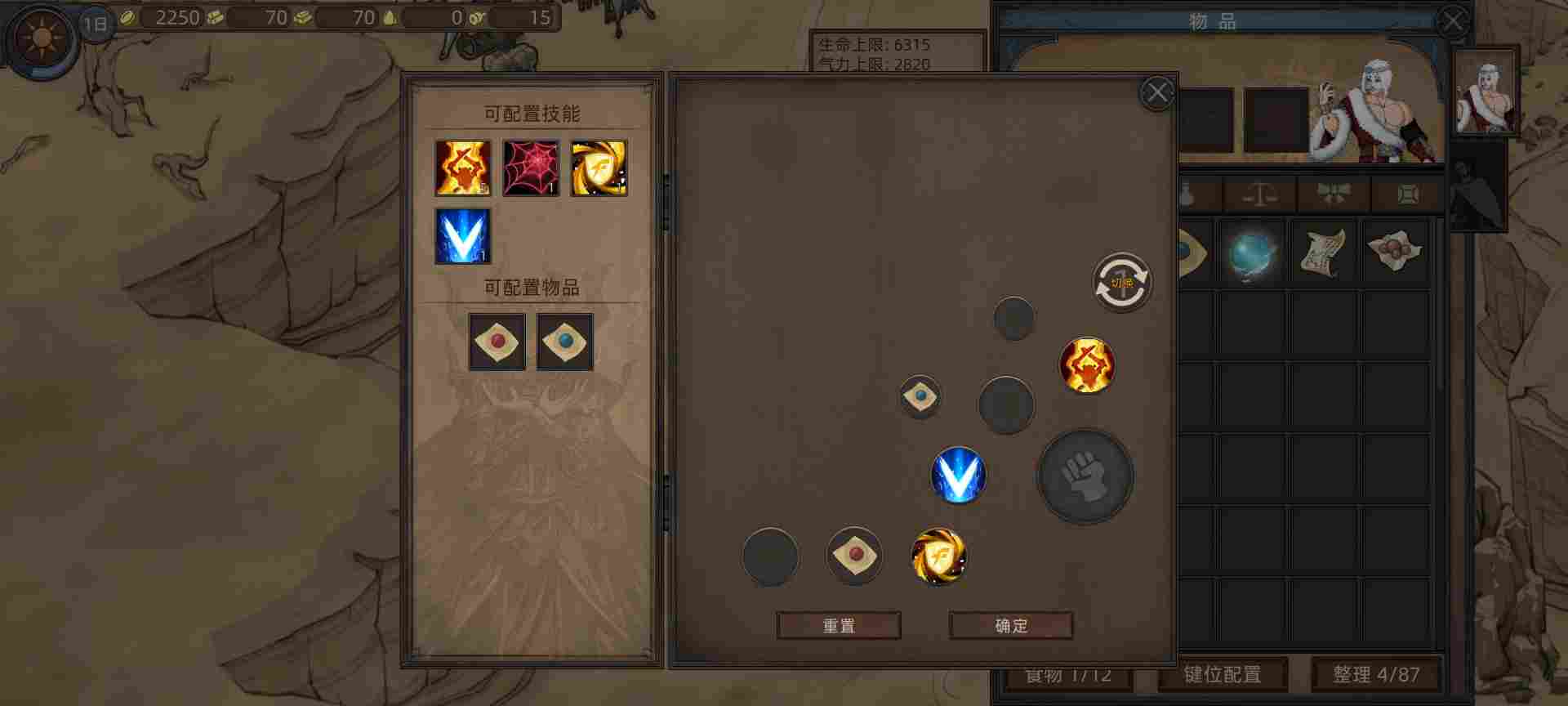 嗯,技能加完后我们打开背包,设置一下技能战斗按键位置。怎么方便怎么调,药剂也加上去。这里楼主的设置就是先开光环,然后给敌人来一套魔剑术,然后再变身狂战士上去平A。这样玩起来就特别有感觉了,不用一开始就平A。