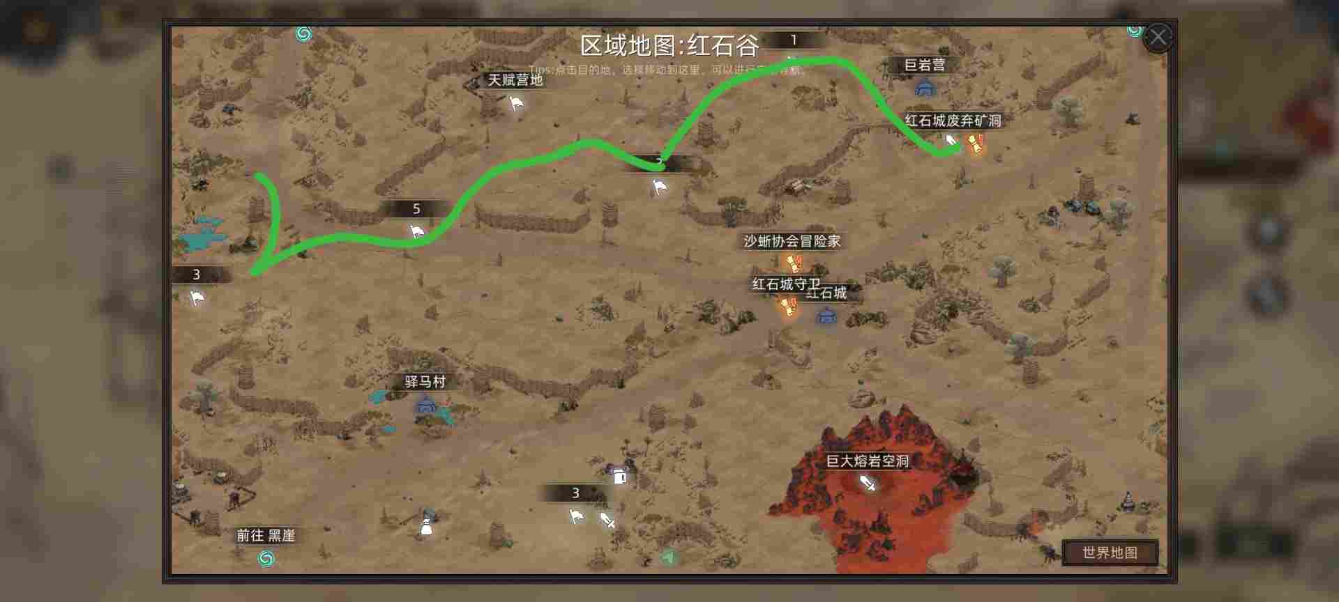 好了,都弄好了。开始准备进入大地图,这里玩家可以自由选择自己喜欢的起点,然后该地区解锁通商许可,这里建议大家选择红石谷,因为这里有前期最基本的装备副本可以刷。