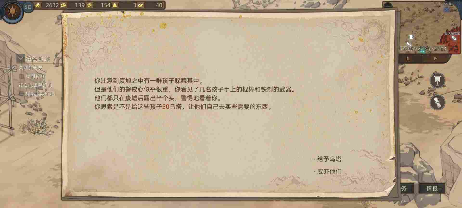 然后我们往右上走,在这里很可惜。这个城镇随机到强盗任务前期是打不过的,所以就不领了。继续往右上角探索打下副本