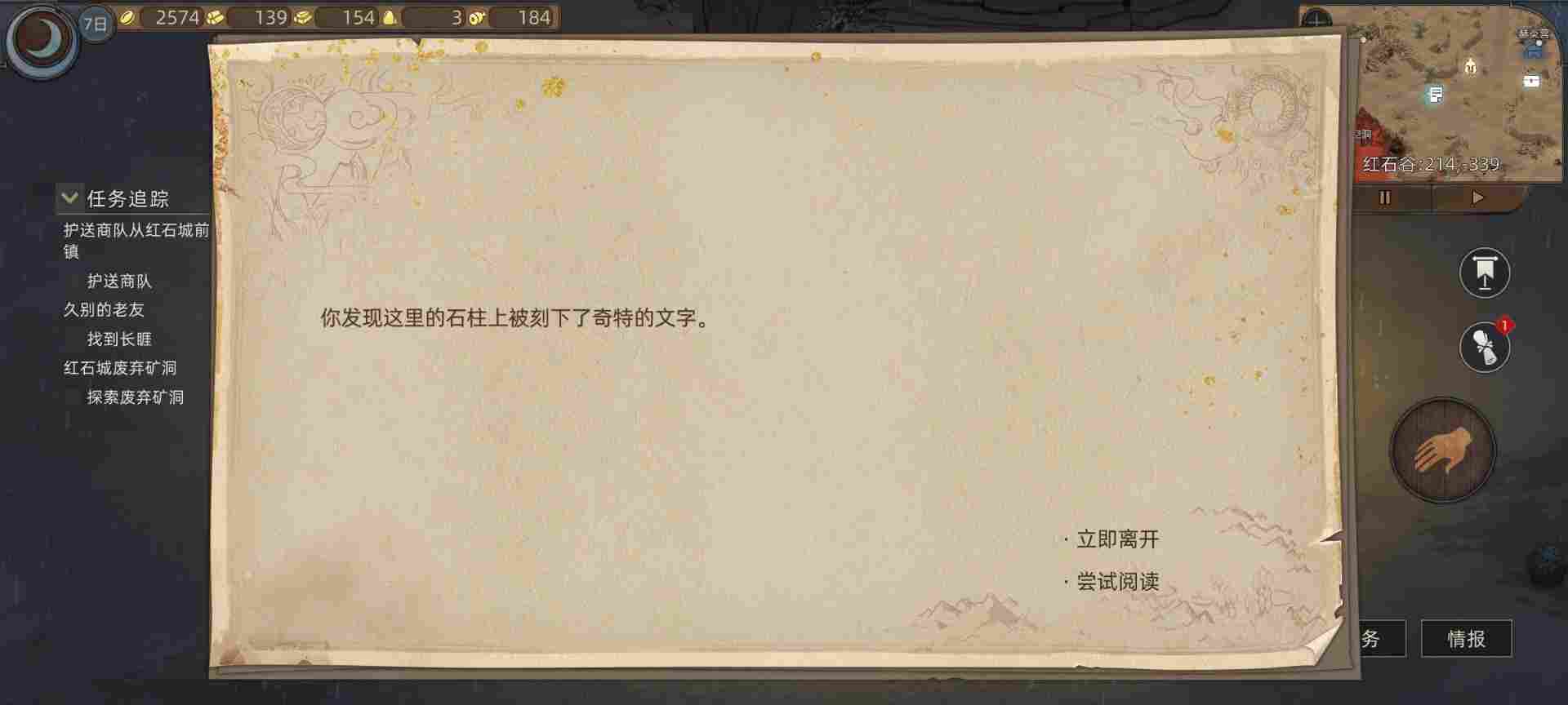弄完后我们从红石城往右边走,这里有个石柱可以尝试阅读,阅读完直接奖励一点天赋点。很香