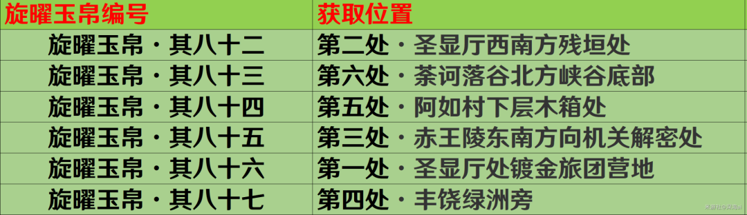 原神原神·资源获取丨V3.1新增的旋曜玉帛·六个 附对照如下: